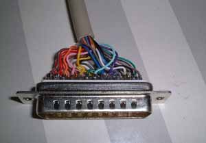 ケーブルの片側を、プリンタのコネクタからDSUB25ピンコネクタ(メス)に付け替えます。(延長用ではなく、直接機器に接続するならオス側をつけます。) コネクタとカバーで200円程度です。 |