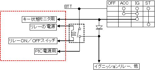 ここに電圧が来ていれば、キーON状態であり、そうでなければキーOFF状態です。