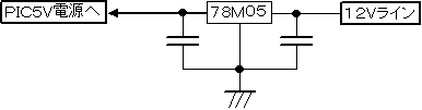ここは簡単に3端子レギュレータ(7805)で5Vを作ります。