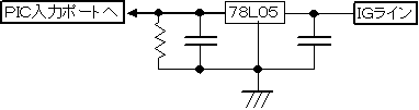 PICの入力ポートに接続します。5V以上の電圧をかけると壊れてしまいますので、